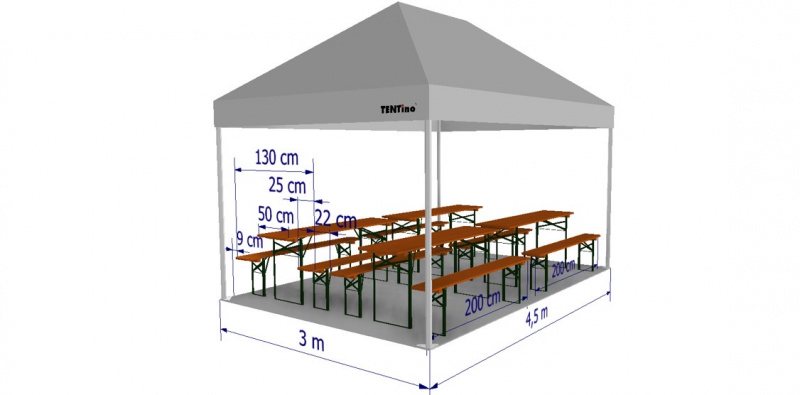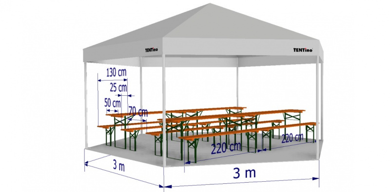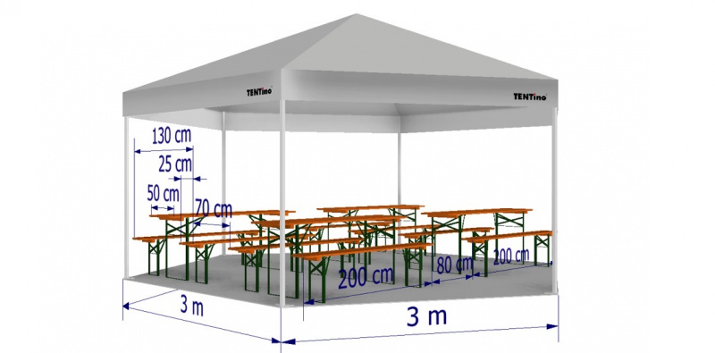 | Rozměr stanu | Počet pivní setů | ||