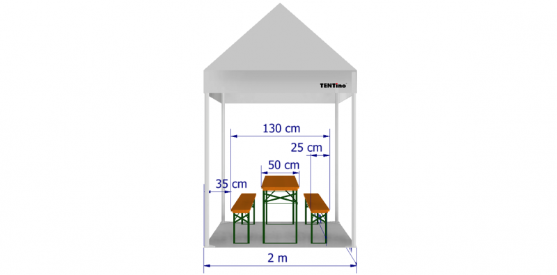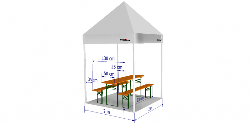 Kolik pivních setů 200 cm se vejde do párty stanu 2x2 m?