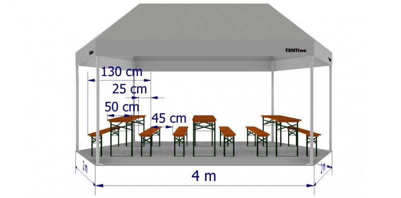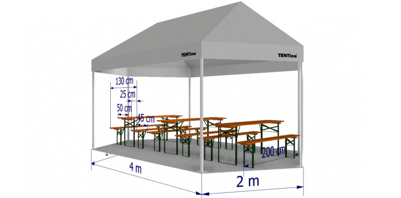 Kolik pivních setů 200 cm se vejde do párty stanu 4x2x2 m?