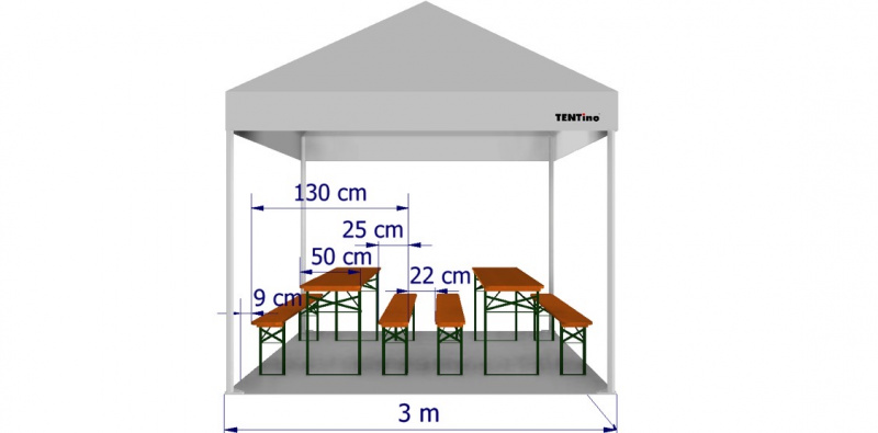 Kolik pivních setů 220 cm se vejde do párty stanu 3x3 m?