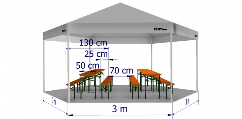 Kolik pivních setů 220 cm se vejde do párty stanu 3x3x3 m?