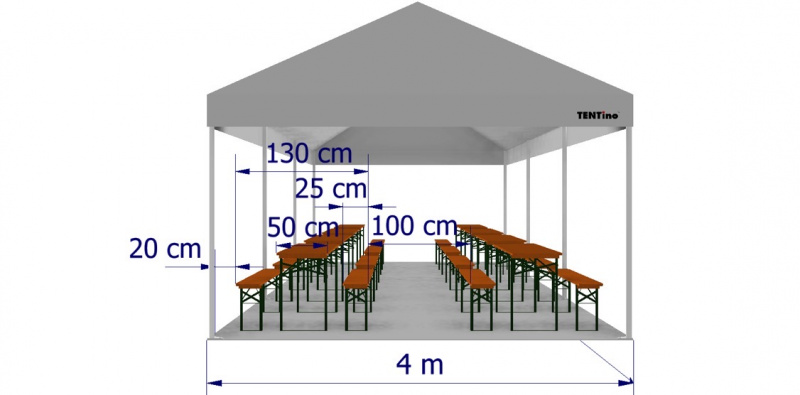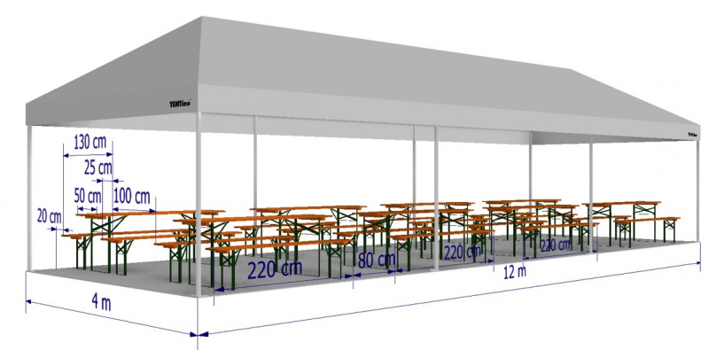 Kolik pivních setů 220 cm se vejde do párty stanu 4x12 m?