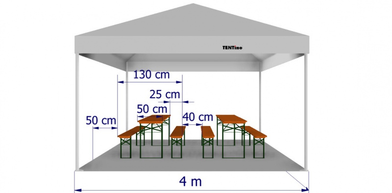 Kolik pivních setů 220 cm se vejde do párty stanu 4x4 m?
