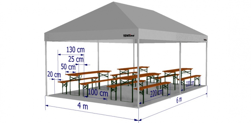 Kolik pivních setů 220 cm se vejde do párty stanu 4x6 m?