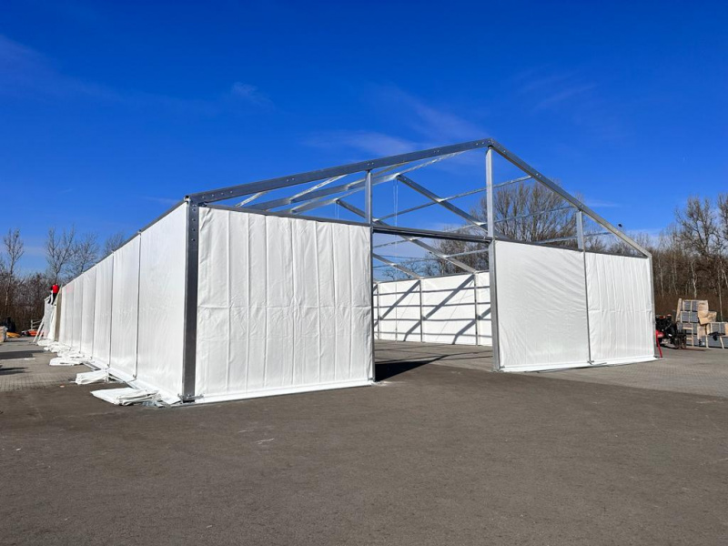 Další významnou výhodou našich montovaných hal je, že navzdory nízké hmotnosti nabízejí dlouhou životnost a odolnost. Naše haly mají pevnou hliníkovou konstrukci, která zajišťuje, že dobře odolávají větru, dešti a dalším povětrnostním podmínkám, a přitom se v případě potřeby snadno montují a demontují. Díky tomu jsou ideální zejména pro dočasné projekty nebo pro projekty na odlehlých místech, kde je třeba minimalizovat dobu montáže, aniž by se snížila kvalita nebo trvanlivost.