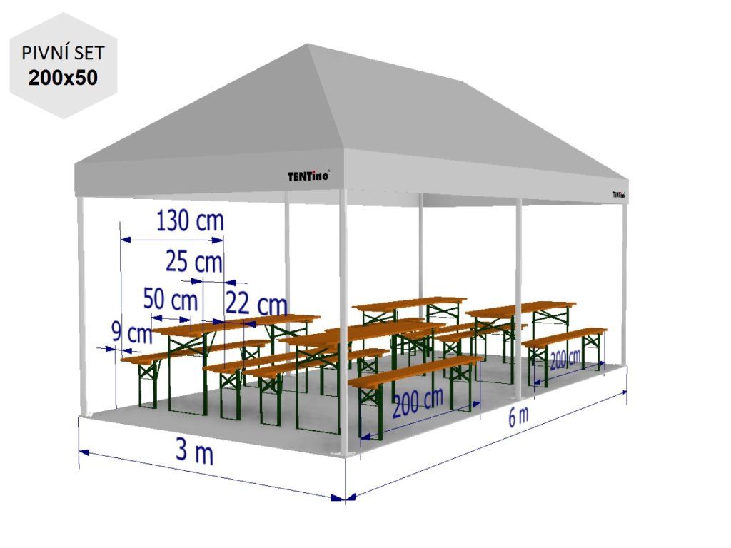 Nůžkový párty stan 3x6 m/6 noh TENTino GABLED EXTREME